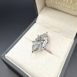 This stunning 6.14 carat marquise-cut lab grown diamond is a statement ring that is completely timeless. Perfectly cut (triple excellent grade) and truly one of a kind. It’s a G in color, VS1 in clarity, and IGI certified.