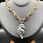 Our estate natural diamond waterfall pendant has 2.4 carats of natural diamonds and is set in platinum. This art deco estate pendant has been revitalized with our signature 18k rose gold necklace.